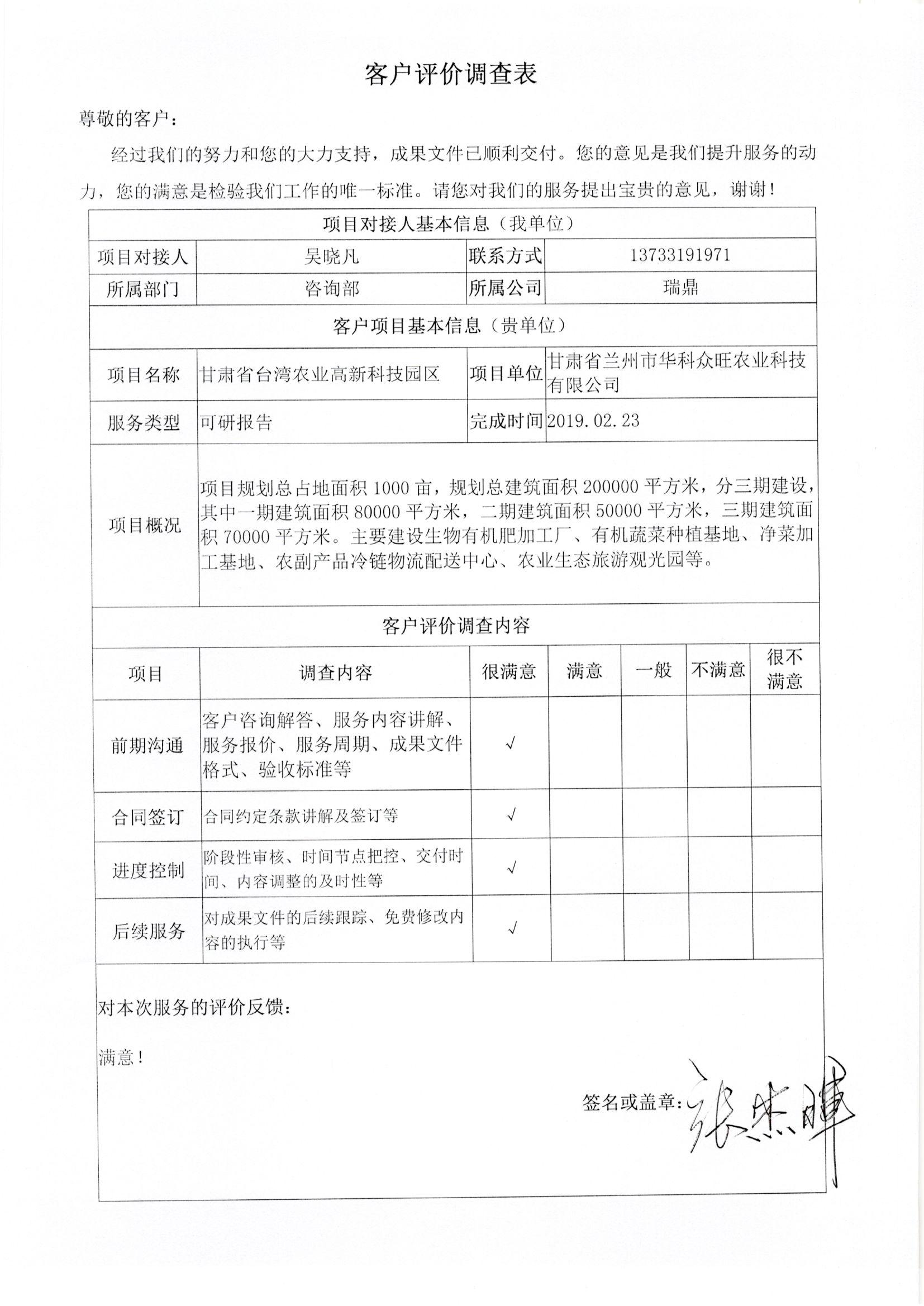 甘肅省臺(tái)灣農(nóng)業(yè)高新科技園區(qū)客戶(hù)評(píng)價(jià)